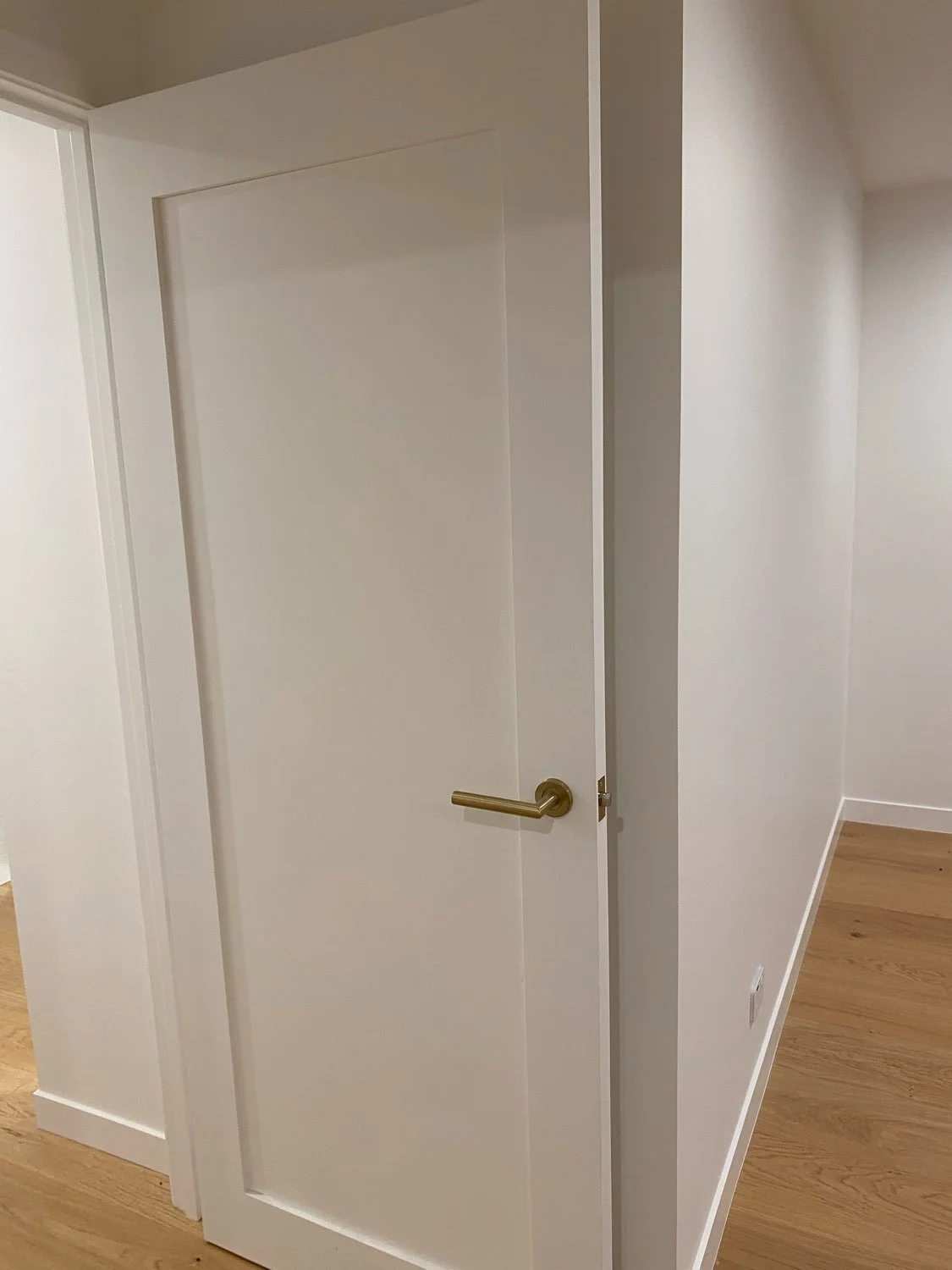 Inside needed new internal doors, traditional new, spray finished, with matt brass hardware