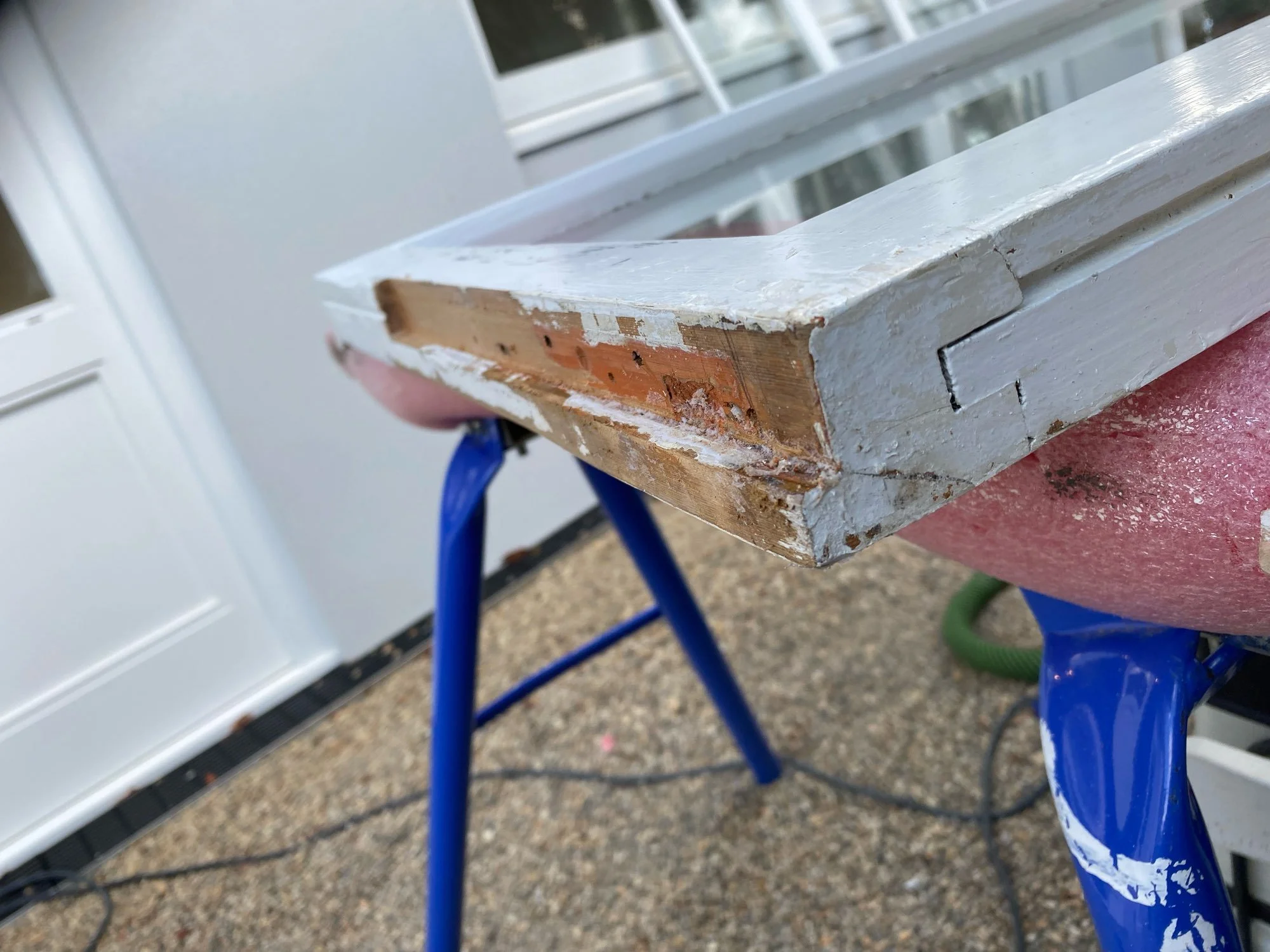 The window stays are corroded and loose from wear, and binding by excess paint- the pink undercoat is a sure sign of lead based primer. As well as needing repair here and there.